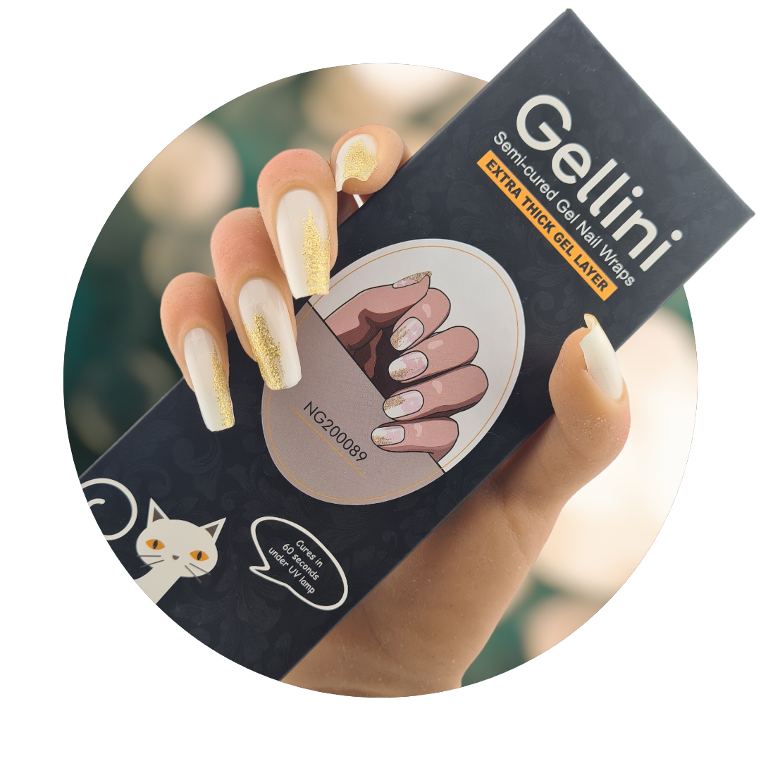 Be a little extra with a flash of gold glitter adorning your gel nail stickers